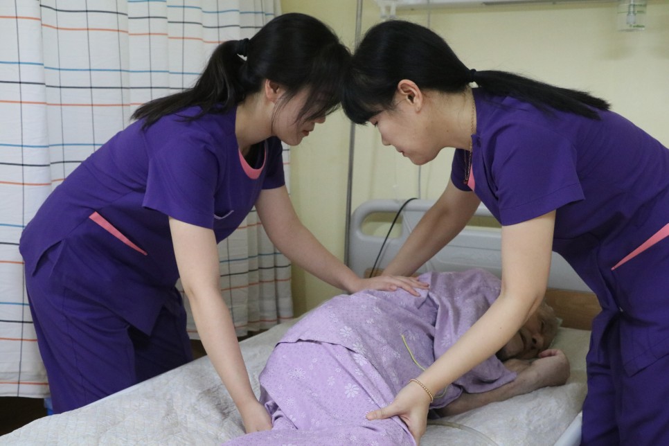 와상 환자의 경우 장시간 고정된 자세로 누워있어 튀어나온 뼈가 피부와 조직을 압박하여 욕창이 발생하기 쉽습니다. 때문에 주기적으로 체위를 변경하여 압박 받은 부위의 압박을 덜어주고 혈액순환을 개선시켜주는 것이 중요합니다. 그래서 한부위가 지속적으로 압박하는 것을 예방하기 위하여 욕창예방 에어 메트리스를 사용하며, 2시간마다 나오는 체위 변경 방송에 맞추어 환자의 체위를 변경하고 안정적 체위를 유지하여 욕창을 치료, 예방합니다.